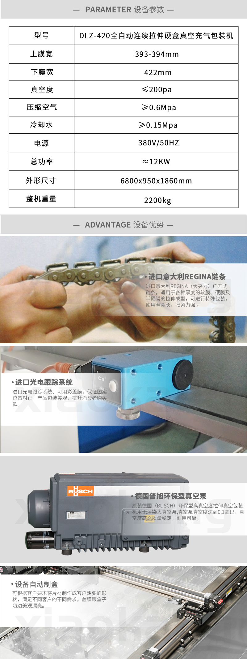 名稱:DLH-420全自動連續(xù)拉伸硬盒充氣包裝機(jī)