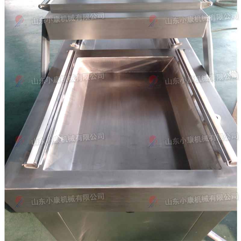 一、雙室真空包裝機(jī)。如果產(chǎn)品小包裝,可以用常規(guī)雙室真空包裝機(jī)。若尺寸較大,可以將雙室真空包裝機(jī)工作臺(tái)面訂做成下凹式真空包裝機(jī),防止袋內(nèi)的液體流出。它的下凹槽是根據(jù)產(chǎn)品包裝大小來(lái)決定的。下凹槽并不是越深越好,而是要根據(jù)物品的實(shí)際情況來(lái)確定,常用的規(guī)格一般為4CM 6CM 10CM三種,用戶需要根據(jù)自己的產(chǎn)品來(lái)確定選購(gòu)哪一種規(guī)格。酸菜里是有些水分的,用這種下凹的機(jī)型可以避免水分被抽出來(lái)。