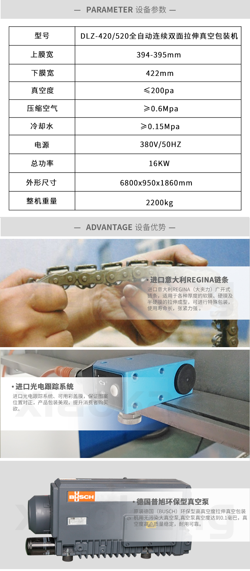 DLZ-420全自動(dòng)連續(xù)雙面拉伸真空包裝機(jī)